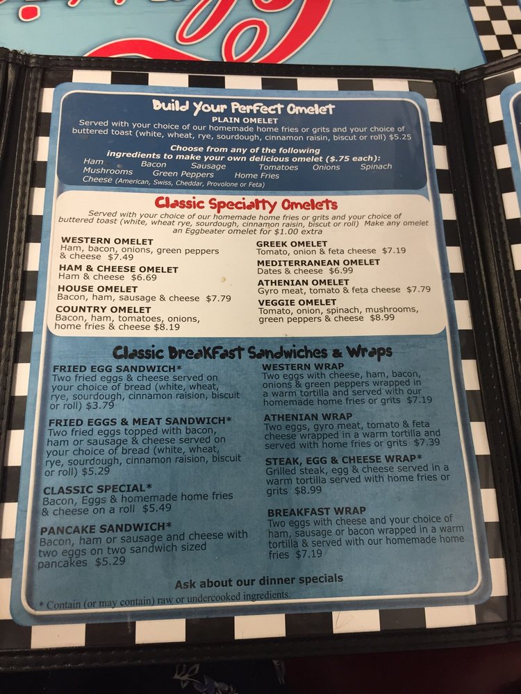 3 eggs any style, patty sausage, ham, 3 strips of bacon, homefries or grits and choice of toast.